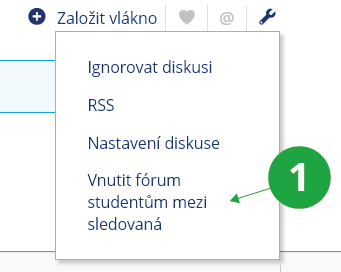 Funkci lze využít výhradně u tematických předmětových diskusních fór. Obecná předmětová fóra nelze studentům vnutit mezi sledovaná.