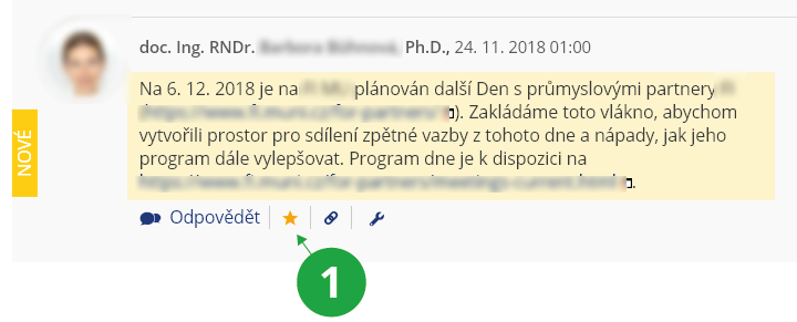 Informační systém Systém Nastavení systému Události Nastavení zasílání informací o událostech v ISu e-mailem - 9.Mohu si označit zajímavý příspěvek?Ano, příspěvek v diskusním fóru si můžete označit hvězdičkou, kterou naleznete vedle tlačítka „Odpovědět“.