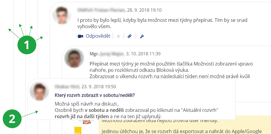 1 V ploše nalevo od příspěvku jsou aktivní místa pro najetí myší.