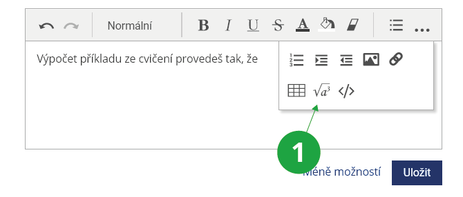 1 Funkce „Vložit matematický zápis“ umožňuje za pomoci TeX notace vkládat matematické zápisy.