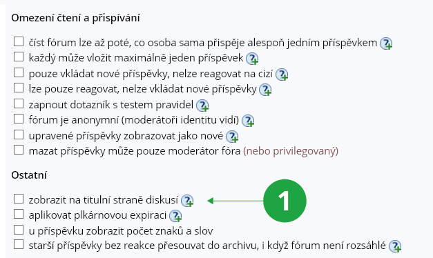 1 Zatržením možnosti v nastavení zobrazíte fórum na titulní stránce tematických diskusí.
